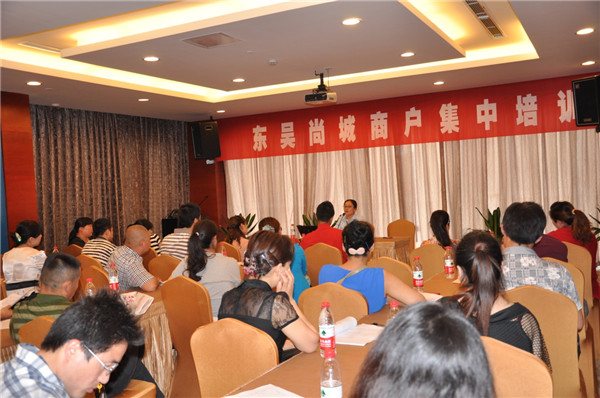 為確保東吳尚城7月中旬順利開業(yè),6月3日起,開發(fā)公司組織開展了入駐商戶集中培訓(xùn)活動,40余家簽約商戶參加培訓(xùn)。在當(dāng)天上午的培訓(xùn)中,開發(fā)公司相關(guān)部門負責(zé)人向商戶介紹了工程進展、入場裝修注意事項以及物業(yè)管理等方面的事宜,并詳細解答了商戶提出的問題。