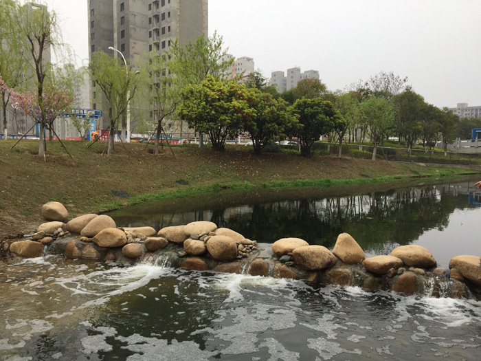 本工程造價(jià)約280萬(wàn)元,主要對(duì)環(huán)形景觀帶進(jìn)行岸線規(guī)整、雨水口護(hù)砌、河道清淤,并種植沉水、挺水植物,設(shè)置景觀攔水壩及人工填料,改善河道水質(zhì),提升景觀效果。
