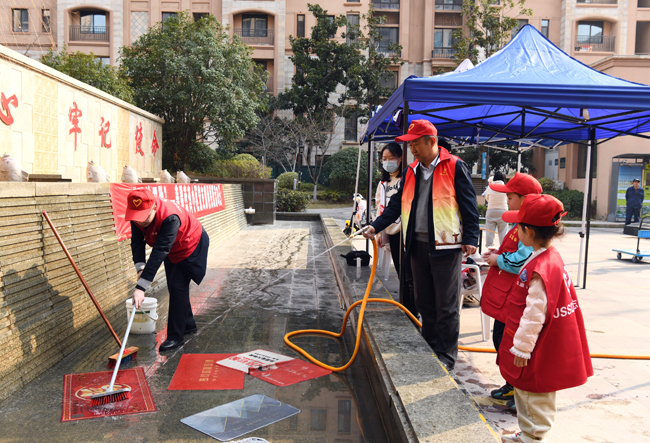 活動現(xiàn)場,黨員志愿者們身著志愿服,在社區(qū)工作人員的配合下,以“便民、利民、為民”為出發(fā)點,為小區(qū)居民免費(fèi)提供理發(fā)、沖洗地墊、清理垃圾等便民服務(wù),用實際行動弘揚(yáng)“雷鋒精神”。