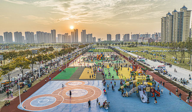 玄武湖西路北側(cè)臨時(shí)健身公園占地面積約2.2萬(wàn)平方米,內(nèi)部設(shè)置720米健身跑道、全齡段健身區(qū)、綜合兒童活動(dòng)區(qū)、平地輪滑場(chǎng)、廣場(chǎng)舞區(qū)及各類(lèi)球場(chǎng)(籠式籃球場(chǎng)4組、7人制籠式足球場(chǎng)1組、羽毛球場(chǎng)4組、網(wǎng)球場(chǎng)一組)等6項(xiàng)主題運(yùn)動(dòng)功能,滿(mǎn)足周邊群眾“一站式”運(yùn)動(dòng)健身需求。場(chǎng)地建成后先后登上人民日?qǐng)?bào)頭版、新華日?qǐng)?bào)、學(xué)習(xí)強(qiáng)國(guó)等國(guó)家主流媒體,園區(qū)充分利用閑置待開(kāi)發(fā)地塊空間,積極構(gòu)建“10分鐘健身圈”,獲得周邊居民的認(rèn)可和喜愛(ài)。