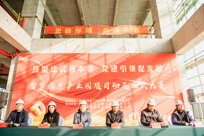 12月6日下午,園區(qū)智慧信息產(chǎn)業(yè)園開展“技能比武強(qiáng)本領(lǐng) 黨建引領(lǐng)促發(fā)展”主題的砌筑比武活動,園區(qū)機(jī)關(guān)及直屬單位黨委副書記、管委會辦公室副主任宋海、園區(qū)國資國企黨委副書記、財政局副局長張保桐、園區(qū)規(guī)劃建設(shè)局副局長劉美霞、園區(qū)建設(shè)工程質(zhì)量安全監(jiān)督站副站長方東、城發(fā)公司管理層及全體黨員、智慧信息產(chǎn)業(yè)園項目參建團(tuán)隊參加本次活動,六組參賽隊伍分工明確,人員緊密配合,經(jīng)過激烈角逐,又快又好完成樣式圖案砌筑,決勝出綜合排名前三的隊伍,并為獲獎隊伍頒發(fā)獎品。