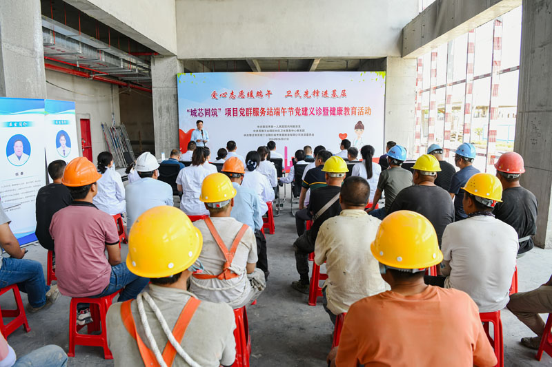為進(jìn)一步弘揚(yáng)中華民族傳統(tǒng)文化,關(guān)心關(guān)愛園區(qū)一線職工,不斷深化黨建合作,打造“城芯同筑”黨建品牌, 6月7日下午,在這個(gè)充滿濃厚傳統(tǒng)文化氣息的節(jié)日里,“城芯同筑”項(xiàng)目黨群服務(wù)站邀請(qǐng)宿遷市第一人民醫(yī)院和蘇宿園區(qū)社區(qū)衛(wèi)生服務(wù)中心的醫(yī)療專家團(tuán)隊(duì)為智慧信息產(chǎn)業(yè)園項(xiàng)目建設(shè)者開展便民義診和健康講座活動(dòng)。